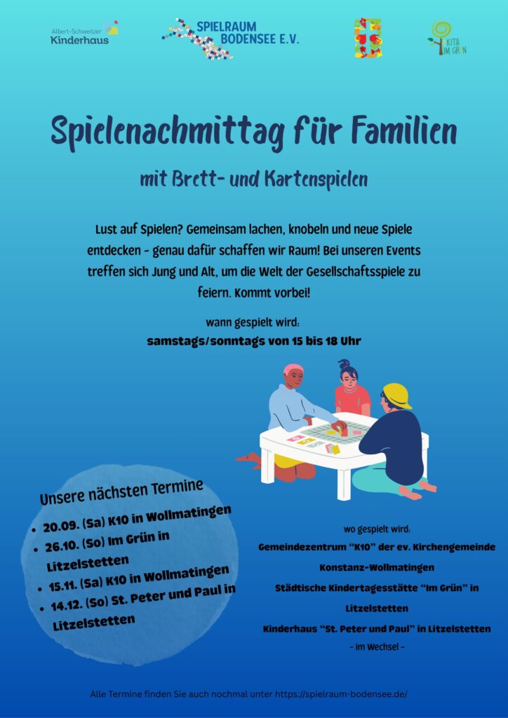 Ab dem zweiten Halbjahr 2025 veranstalten wir Spielenachmittage, die sich an alle Generation richten, insb. an solche, für die abends nicht so geschickt ist, z.B. Familien mit jüngeren Kindern.